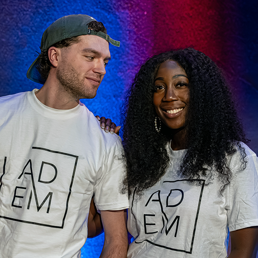 Voorzien van zwart ADEM logo op voor- en achterzijde